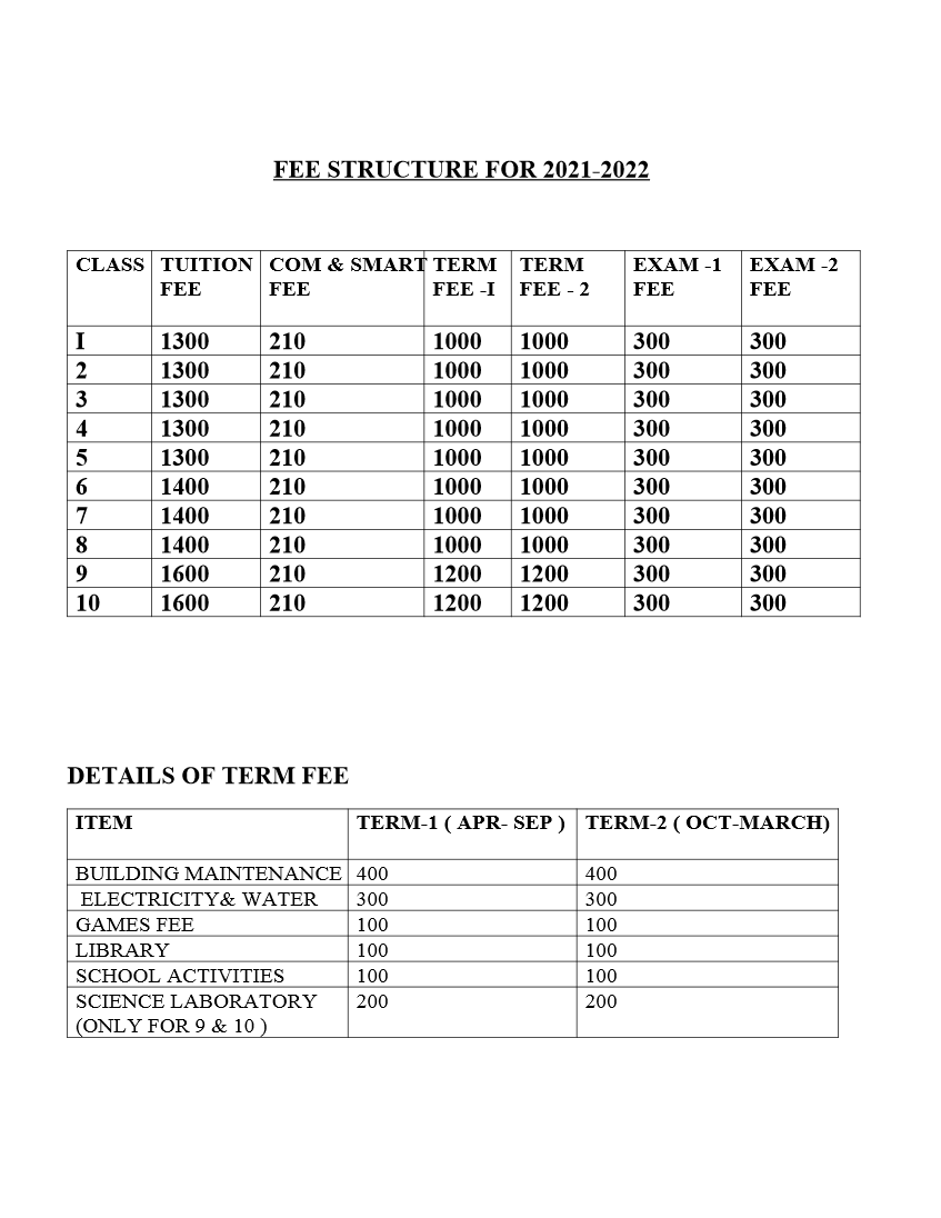 - All dues must be paid before school closes for any vacation. Fees for Computer Education will be charged separately for twelve months of the session.